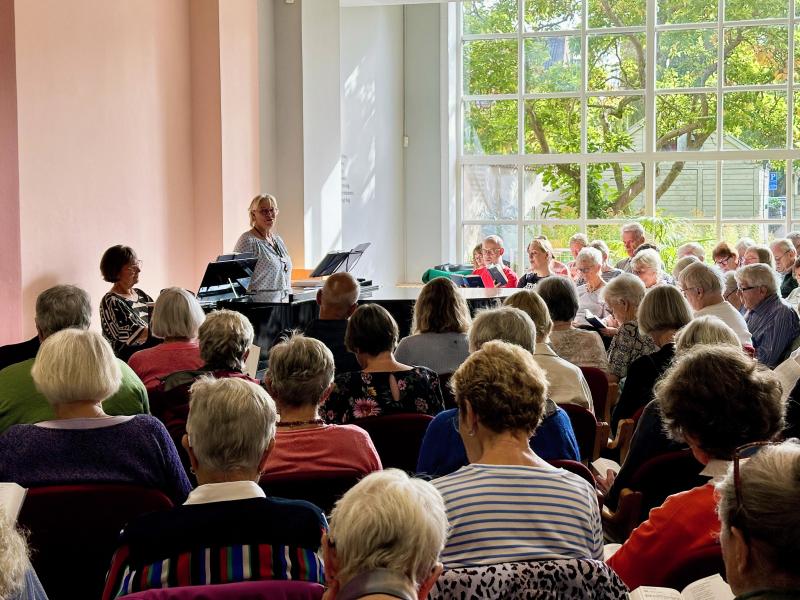 Salen er altid fuld af sangglæde mennesker, når Sigrid Diness (klaver) og Birgit Toftegaard (sang) slår dørene op til morgensang.